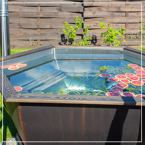 В нашем чане комфортно разместятся 3-4 человека. Вода в чан заливается из собственной скважины, фильтруется и используется только один раз. Моется после каждого применения.